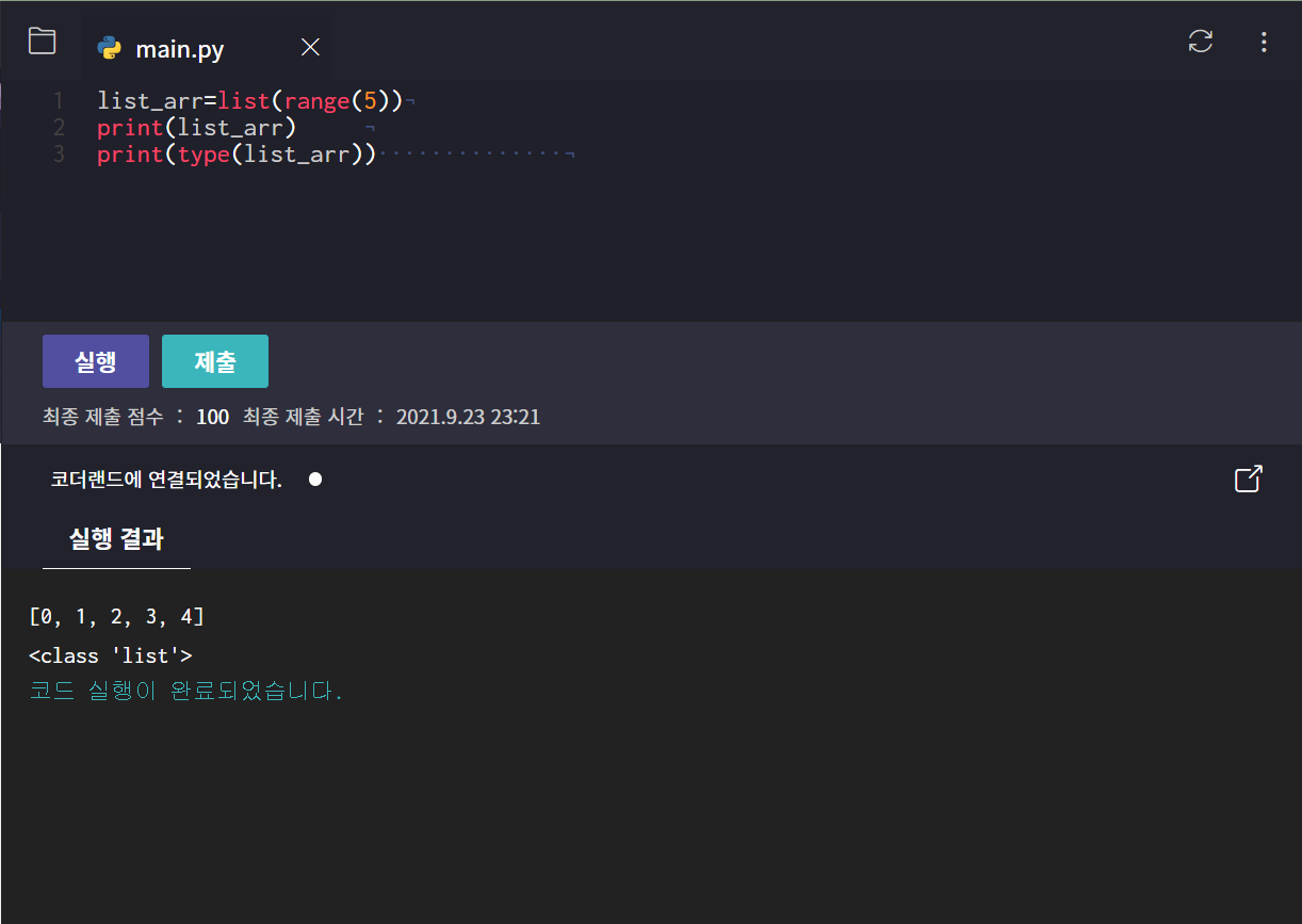 list는 [0, 1, 2, 3, 4, 5] => ,로 구분, 배열은 [0 1 2 3 4 5] => 공백으로 구분