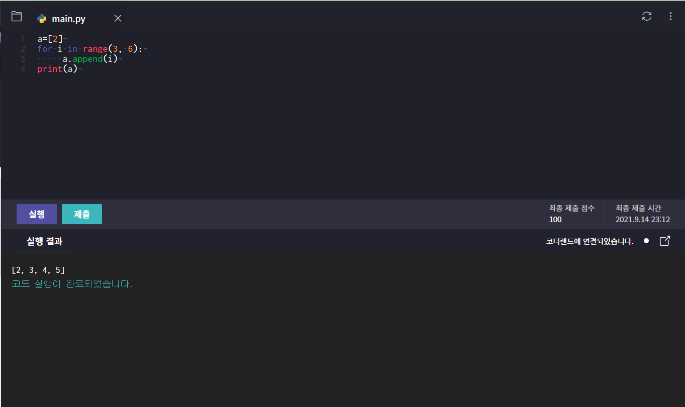 : 구간을 반복하는 작업, a이상 b미만의 수를 변수에 넣어가며 명령 수행